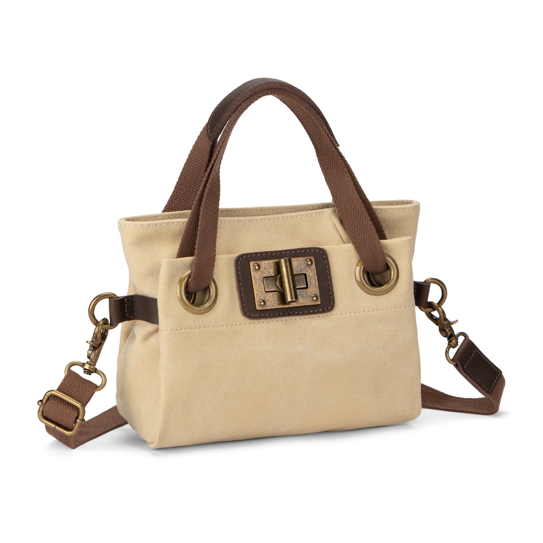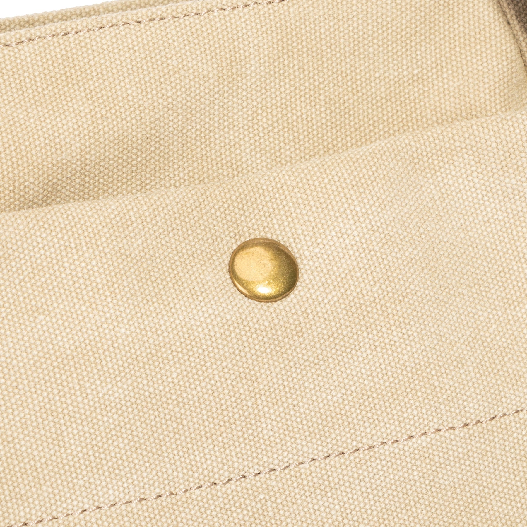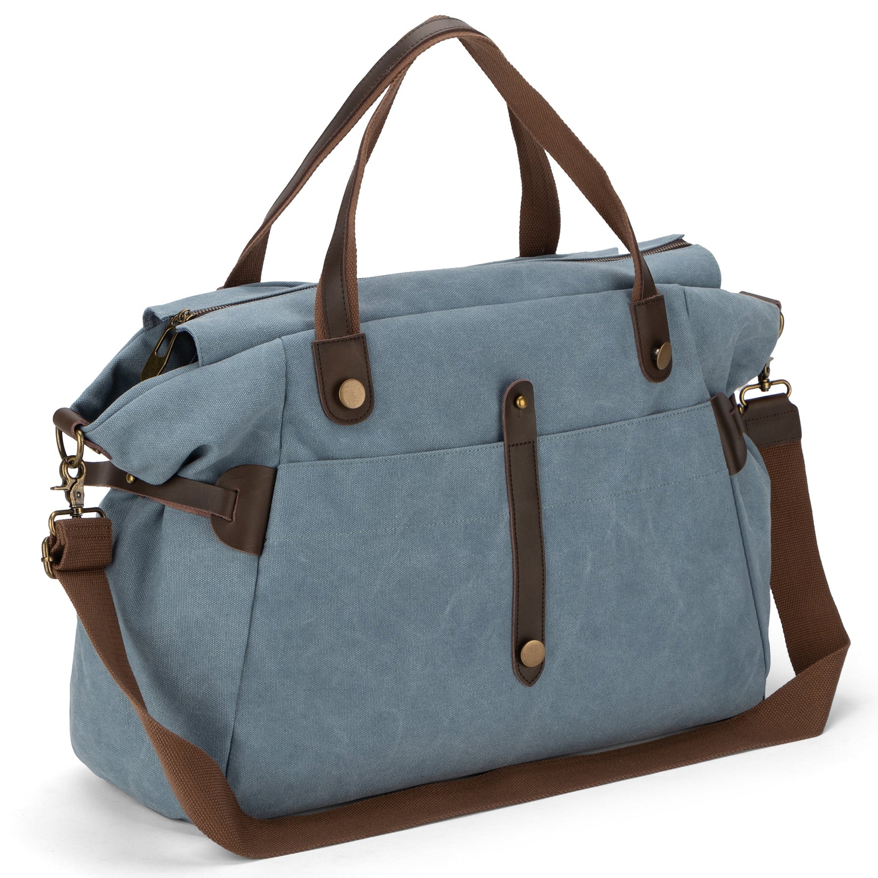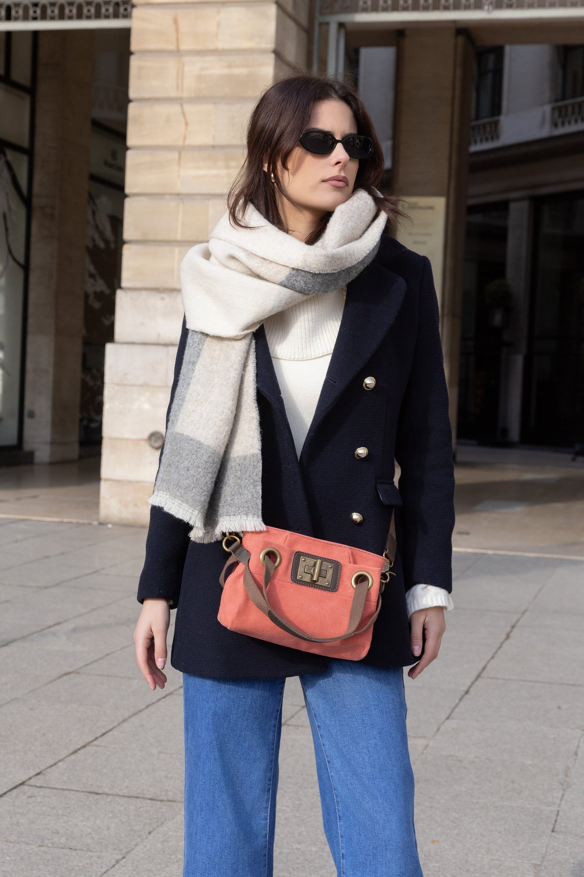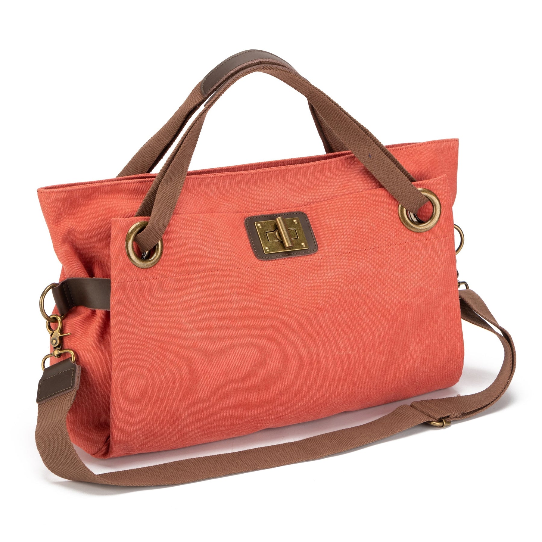 Die Tasche aus gewaschener Baumwoll-Canvas und Spaltleder vereint Weichheit und Authentizität. Die Griffe aus einer Mischung aus Canvas und Leder sorgen für optimalen Tragekomfort. Im Inneren verfügt die Tasche über fünf Innentaschen, darunter zwei mit Reißverschluss, eine große Rückentasche mit Magnetverschluss und eine geräumige Fronttasche mit Knebelverschluss.