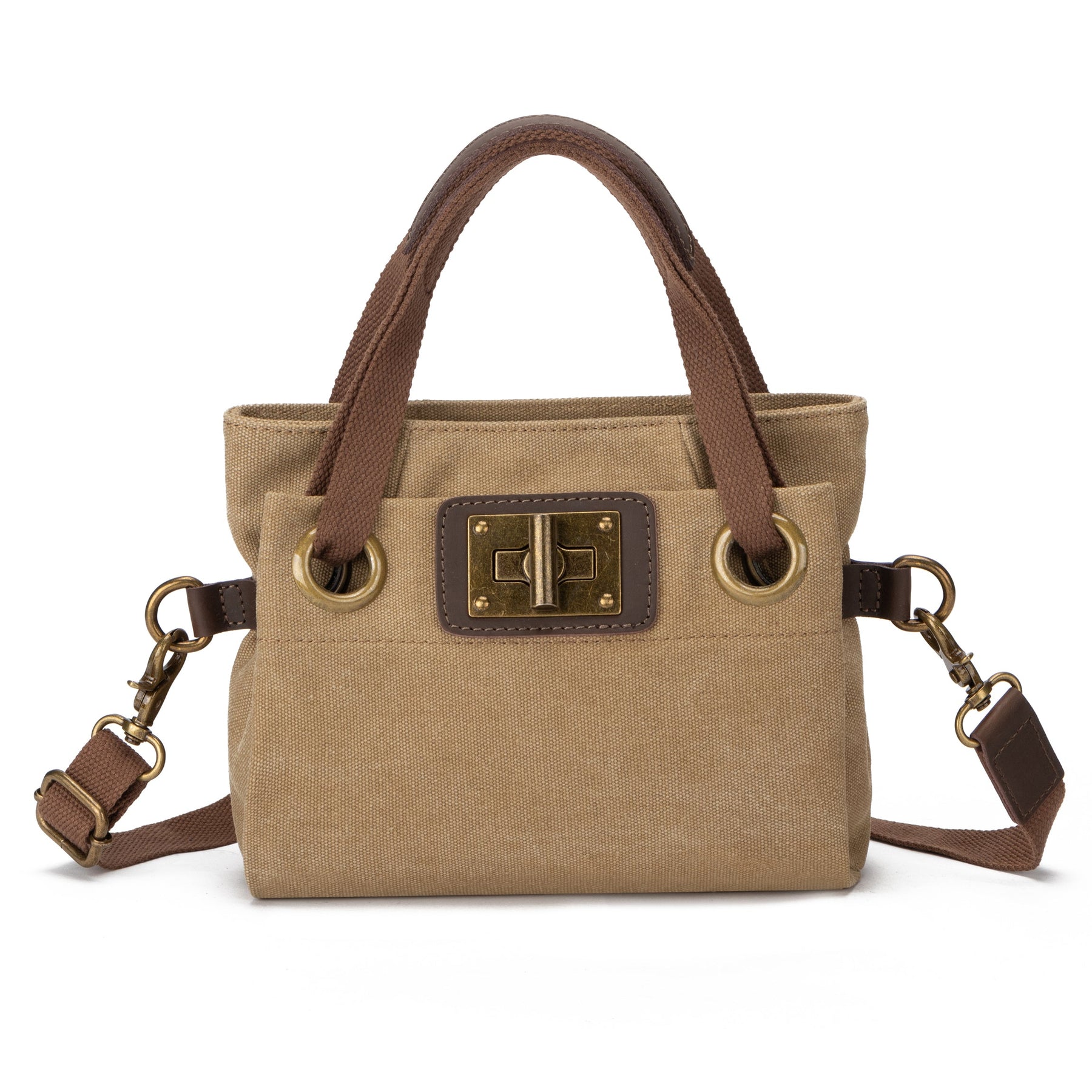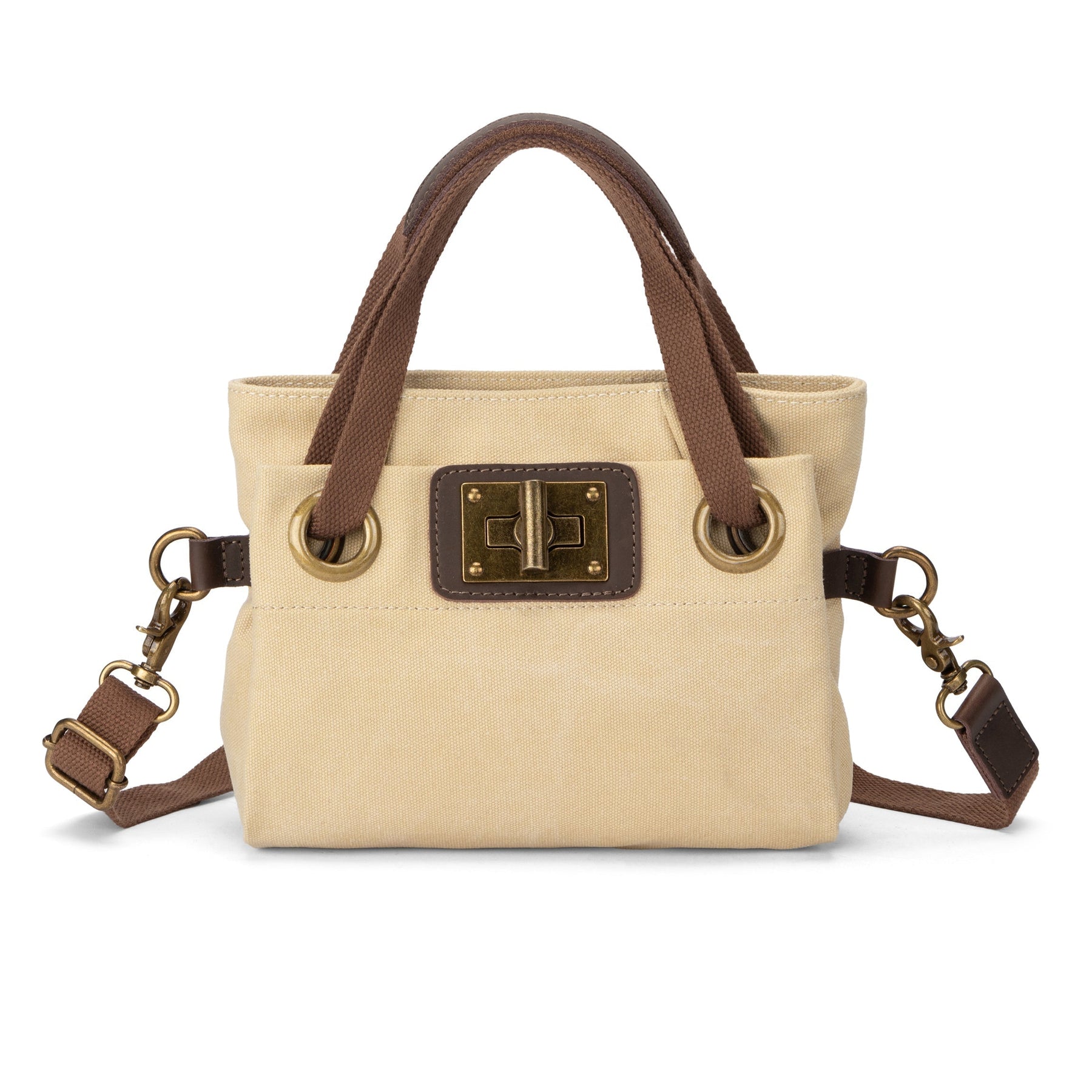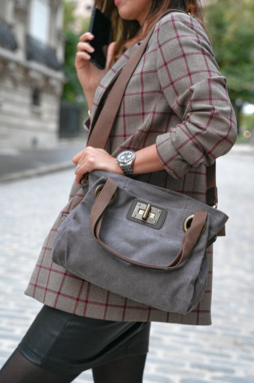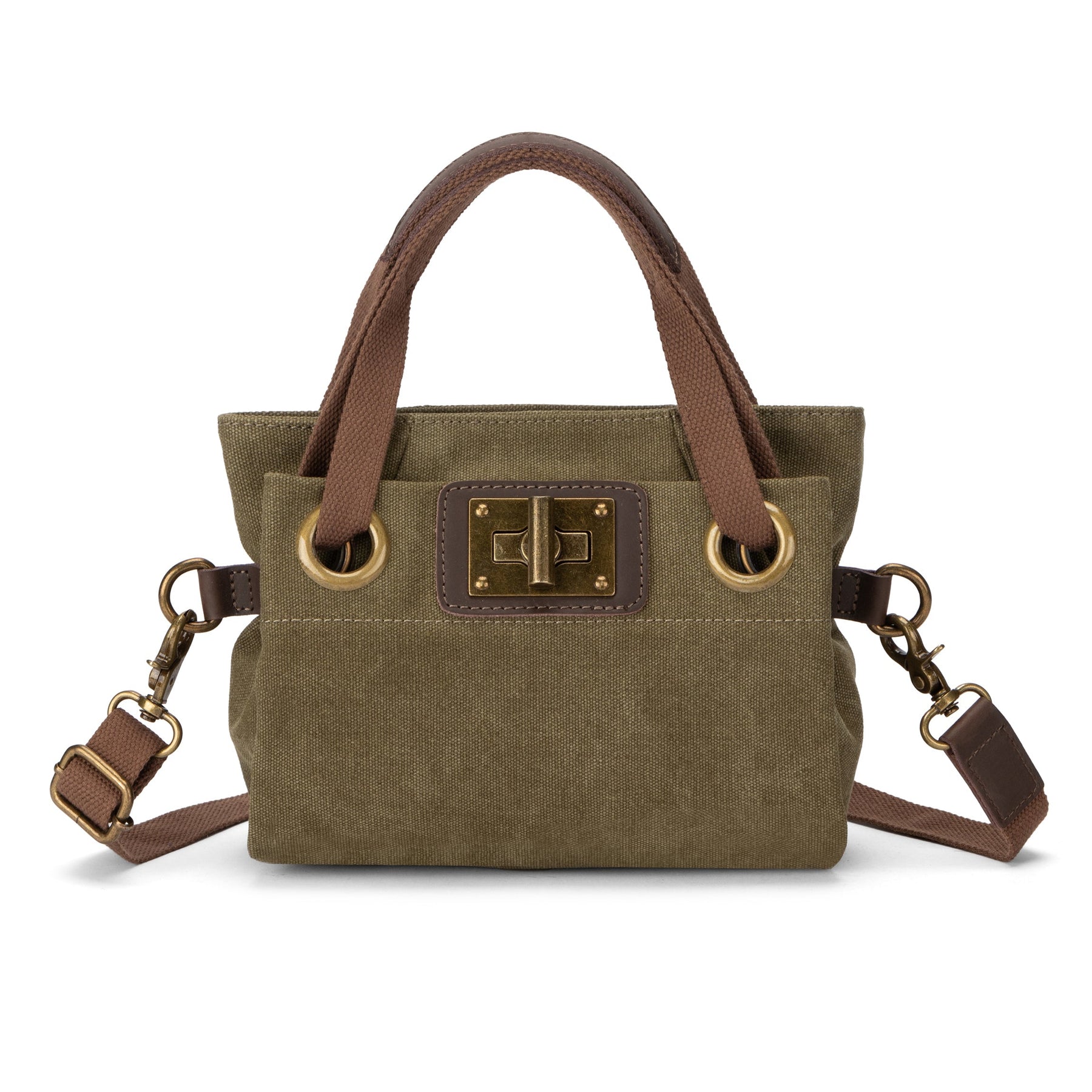Die Tasche aus gewaschener Baumwoll-Canvas und Spaltleder vereint Weichheit und Authentizität. Die Griffe aus einer Mischung aus Canvas und Leder sorgen für optimalen Tragekomfort. Im Inneren verfügt die Tasche über fünf Innentaschen, darunter zwei mit Reißverschluss, eine große Rückentasche mit Magnetverschluss und eine geräumige Fronttasche mit Knebelverschluss.