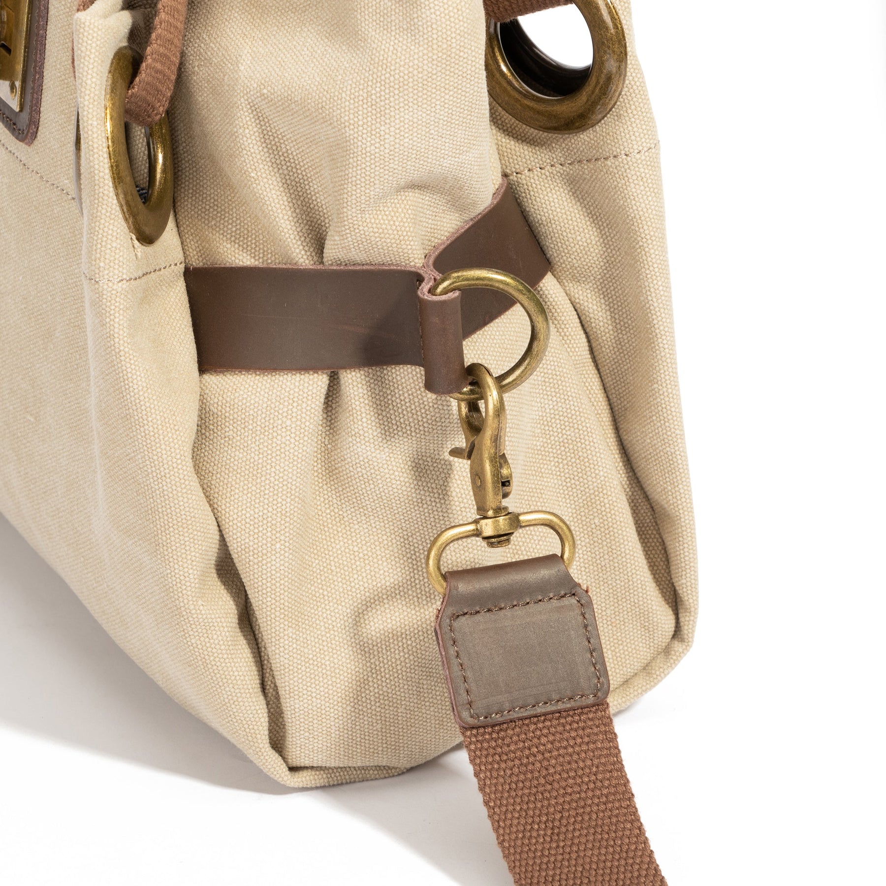 • Verstellbarer und abnehmbarer Schultergurt aus Canvas