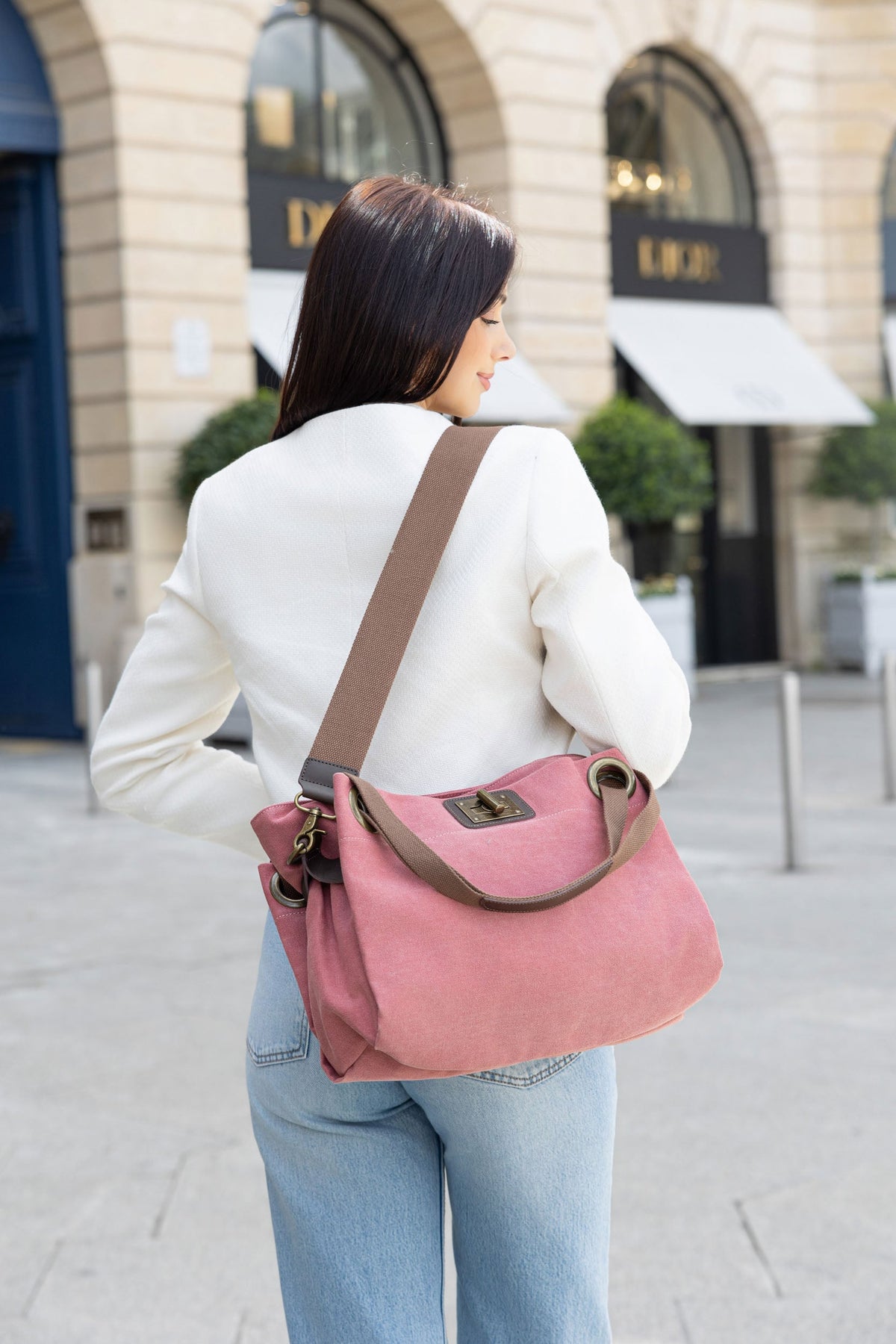 Der großzügige Stauraum bietet Platz für Dokumente, Beauty-Accessoires und Tablets. Jedes Detail wurde sorgfältig durchdacht, um Ihnen ein außergewöhnliches Erlebnis zu bieten. Dank des verstellbaren und abnehmbaren Schulterriemens aus Canvas können Sie die Tasche je nach Wunsch über der Schulter, quer über den Körper oder in der Hand tragen.